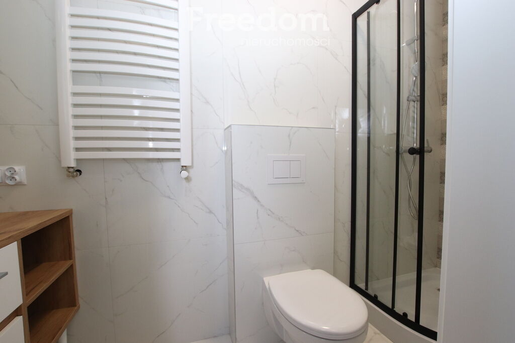 ->Całość uzupełnia nowoczesna łazienka z kabiną prysznicową.